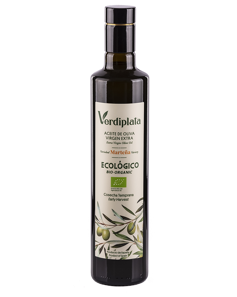 Botella 500ml AOVE Ecológico Verdiplata Sin Estuche. Variedad Marteña