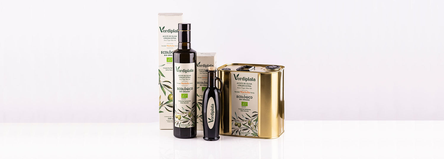 Botella 500ml AOVE Ecológico Verdiplata Con Estuche. Variedad Marteña